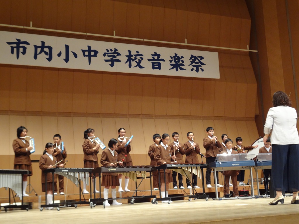 鹿島区のさくらホールで開催された「鹿島区小中学校音楽祭」に、5年生と器楽部の子どもたちが参加しました。