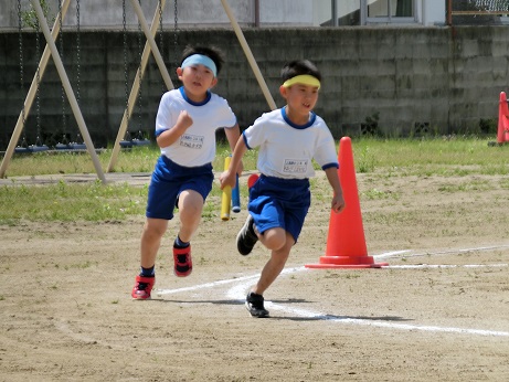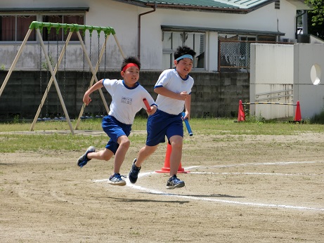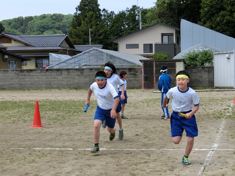 全校リレーの練習の様子です。みんなで心をひとつにバトンをつなぎます。
