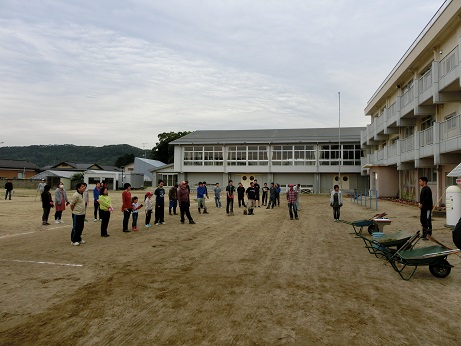 朝の校庭整地にご協力いただきました保護者の皆様、