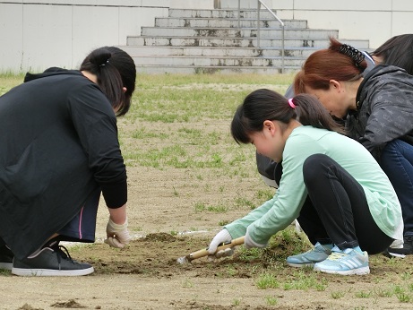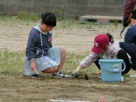 13日にPTA奉仕活動で、校庭の除草作業・校庭わき側溝の砂上げを行いました。校庭の草もほとんどなくなり、ますます運動会が待ち遠しくなりました。
