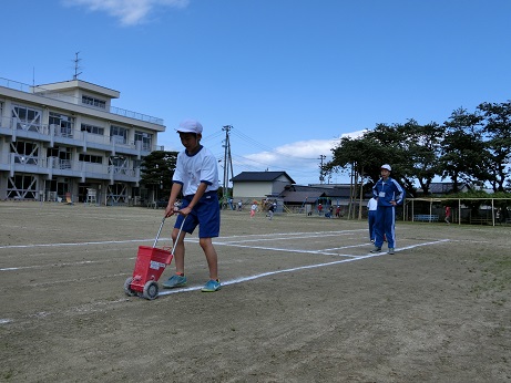 いよいよ明日にせまった運動会。今日は、5・6年生が会場の準備を行いました。