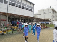 地震発生直後の机の下に身を隠す訓練,火災発生後の校庭への避難と全校生が真剣な態度で取り組むことができていました。廊下ではきちんとハンカチで口元を押さえ,無言で整然と避難する姿が見られました。