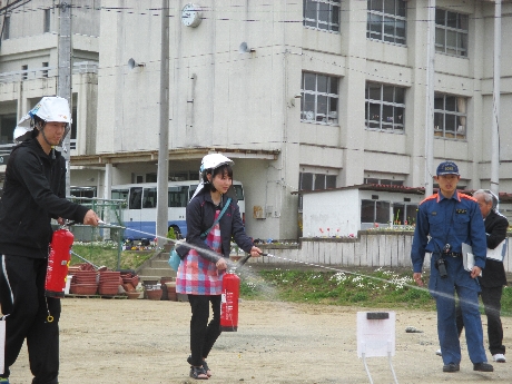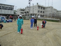 水消火器を使った消火訓練では,先生方と共に6年生の代表4人が体験を行いました。火事の時には,基本的に逃げることが大切なのですが,万が一の場面での技術として子ども達にも覚えてほしいと思いました。