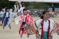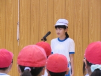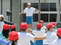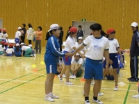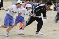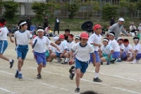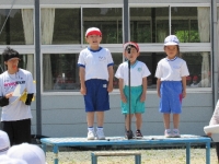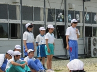 子ども達も全員が精一杯の力を出して頑張っていました。1年生は初めての運動会でしたが,開会の言葉を元気に行うことができました。その他の競技や演技でもかわいい姿を見せていました。その1年生のお世話をしていたのが2年生です。