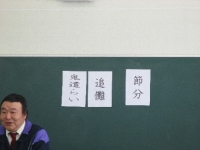 教室に戻ってからは,年男・年女である5年生が豆をまきに来てくれました。「鬼は外」「福は内」の掛け声とともに,元気に豆をまいてくれました。5年生の勢いに全校生の心の中にいた鬼も,みんな追い出されてしまったかのようでした。短い時間でしたが,日本の伝統を感じながら心の鬼を退治することができました。