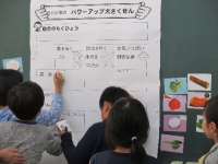 はじめに,様々な料理の中から自分たちで選んで1食分のメニューをつくる「紙上バイキング」を行いました。みんな自分の好きなものを選んでメニューを作りとても楽しそうでした。