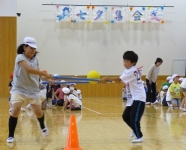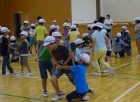 普段の休み時間は大体自分のクラスメートと遊ぶことが多いのですが,この集会は全学年が交流しながら遊べる機会なのでみんな参加しています。活動の中では,上級生は自然と下級生の面倒を見たり,力に加減を加えたりしています。下の子にとっては,普段は遊べないお兄さんやお姉さんと楽しく遊べる場にもなっています。また,交流の中で自然に言葉遣いなども覚えていっているようです。