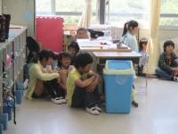 昨年度,金房小学校を含む小高区3校は,花いっぱいコンクールで県教育委員会教育長賞を受賞するなど,緑化活動に力を入れています。今年度も環境緑化担当の先生方を中心に仮設校舎の周りを花でいっぱいにしようと頑張っています。