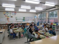 28日に栄養士の実習生が来校しました。先週から給食センター業務を学びに南相馬市給食センターに実習にきているとのことです。本日は小高区の小学校で、3年生と一緒に給食を食べながら実習を行いました。実習生は金房小学校出身ということもあり、母校の訪問を選んでくれました。それを聞いて「一緒だあ」とニコニコしている児童もいました。
