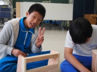コレクション台は,複雑な形をしていないのですんなりとできるのかと思っていましたが,きれいな作品にするとなると一気にハードルが高くなりました。ずれないように押さえていても金づちで釘を叩いている間にずれてしまい,何度もやり直しをしている子がたくさんいました。思考錯誤を繰り返すうちに,何とか全員素晴らしい作品が完成しました。