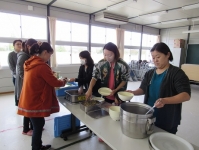 給食センター見学の後は、いよいよ学校に戻って試食会です。何名かの方に給食当番として配膳の体験もしていただきました。さすが家庭で慣れていらっしゃるので、配膳する分量はぴったりでした。ご自身の小学校時代の懐かしのメニューなどの話や、給食に関する質問など和やかな雰囲気での食事となりました。今回は、子ども達の食べている給食の味や献立だけではなく,安心・安全の様子も伝えることができ,素晴らしい試食会でした。今後も給食を通して栄養をたっぷりと採ってもらうと共に、食文化も伝えていきたいと思います。
