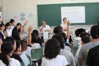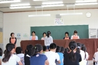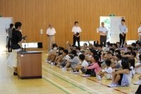 1学期の反省では,「きちんとバスを待つことができた」「シートベルトを忘れずにしていた」「あいさつの声が小さかった」など様々な意見が出されました。さらに自転車の乗り方や道路の陥没個所など安全に生活するための意見交換も行われました。不審者対策の「いかのおすし」の再確認なども行い,短い時間でしたが楽しい夏休みを過ごすためには大切な集会になりました。