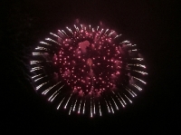 実際に当日は花火大会と共に,この火の玉が小高区の沿道を照らしていました。たくさんのお客さんが集まり,小高区の今後の復興を願っていました。小高区の校舎で学習するのはしばらく先の話になりますが,お祭り当日のように町がにぎわう日を夢見ていきたいと思います。