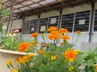 このような過酷な中でも花たちは元気にすくすくと生長しています。土手のコスモスは元気に花をつけ始めましたし,花壇のサルビアやマリーゴールドは美しく咲き誇っています。2年生の育てている畑の野菜たちも豊かな実をつけててますし,5年生の稲もどんどん伸びています。
