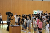 1・3・5年生の代表のお友達からは夏休みの思い出や2学期のめあての発表もありました。1年生は「音読をがんばりたい」「たくさん読書をしたい」「ひき算やたし算をがんばりたい」という目標を発表しました。3年生は楽しかったスイカ割りの思い出や「文字をていねいに書く」「学校を休まずに来る」という目標を発表しました。5年生は楽しかった旅行の話とともに,「間違えを恐がらずに進んで発表したい」「料理など役に立つことをがんばりたい」という目標を発表しました。