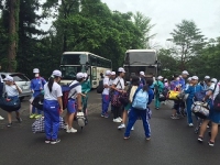 先ほど5・6年生が会津へ宿泊活動へ出発しました。今日から3日間の宿泊活動になります。出発式では、「宿泊活動をとおして、友情を深めたい、体を強くしたい、自然にふれたい」など6年生があいさつしました。雨がふっていましたが、元気に出発しました。