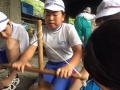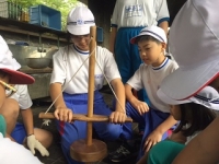 マッチやライターなどで簡単に火を手に入れられる現代。縄文人になったつもりで火おこし体験です。煙が出るところまではどの班もできましたが、火がついた班は、6班中3つでした。