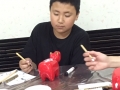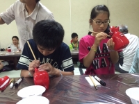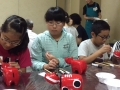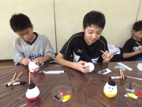 まずは、全員で鶴ヶ城会館で、「赤べこ・起き上がりこぼしの絵付け体験」です。1人ひとり、世界で1つだけの作品ができました。どんな作品ができたかは、あとのお楽しみです。