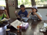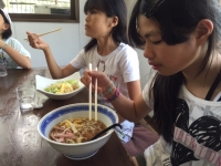 5班は、喜多方ラーメンのお店を予約しました。本場?の喜多方ラーメンを食べた人、涼を求めて冷やし中華を食べた人、それぞれに自分の食べたいものを注文しました。