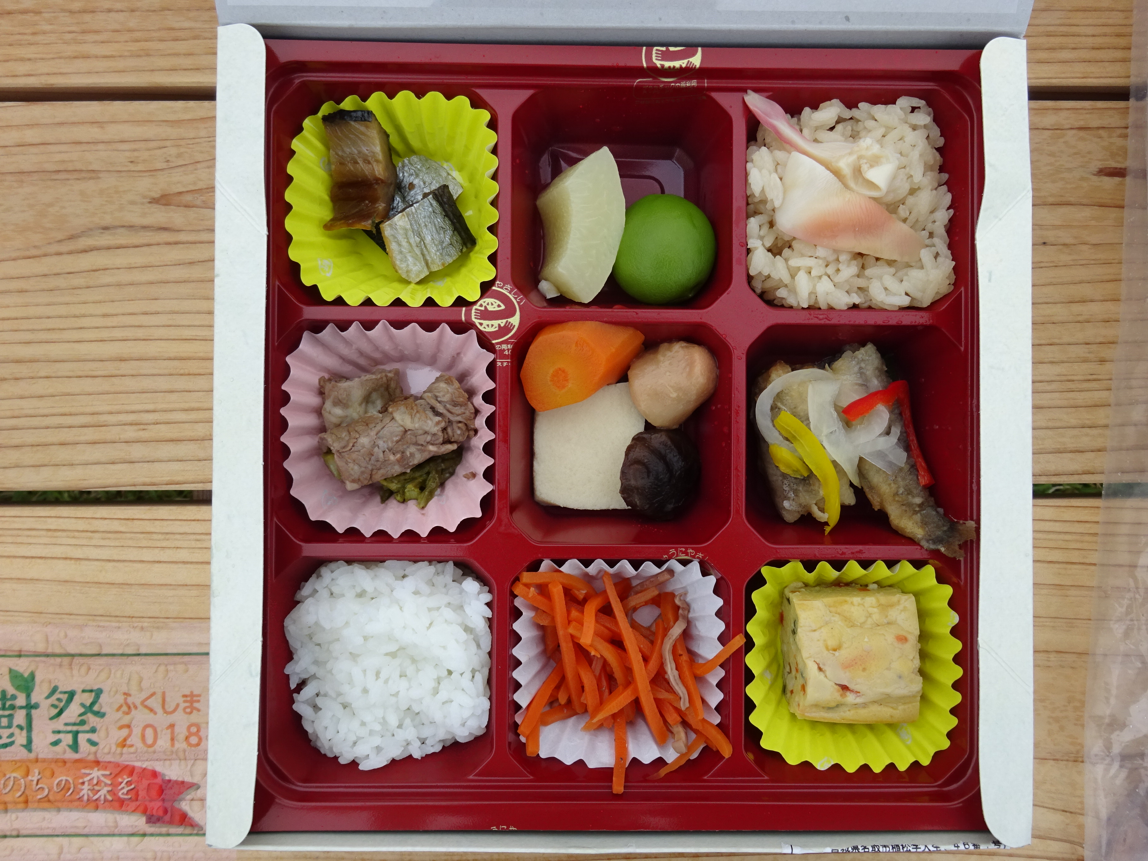 昼食のお弁当には、福島県ゆかりの食材がふんだんに使われていました。