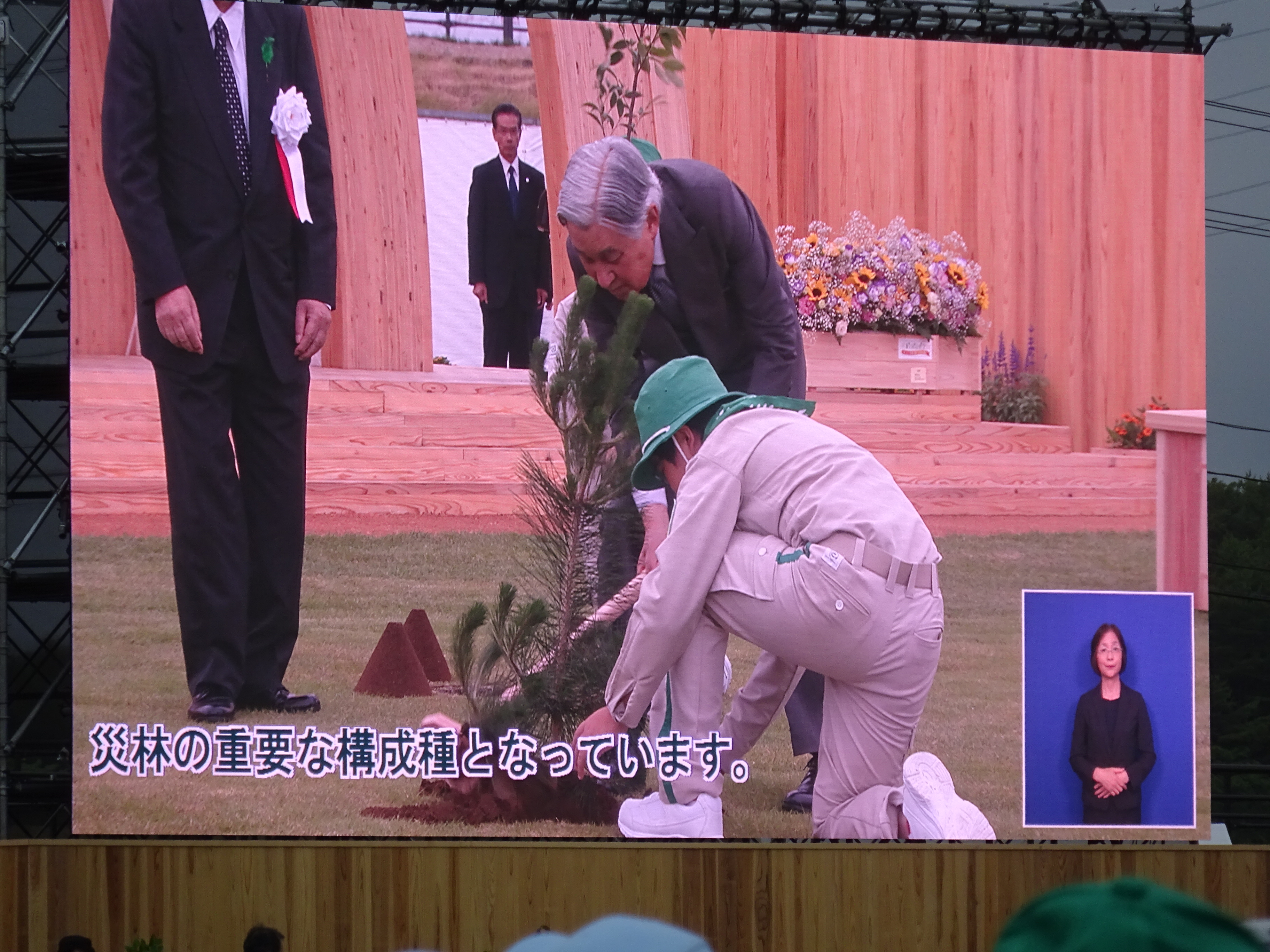 天皇陛下は、クロマツ(海岸防災林の基本樹種)とケヤキ(福島県と南相馬市の木)、スダジイ(浜通り地方の常緑広葉樹を代表する樹種)の3種をお手植えされました。