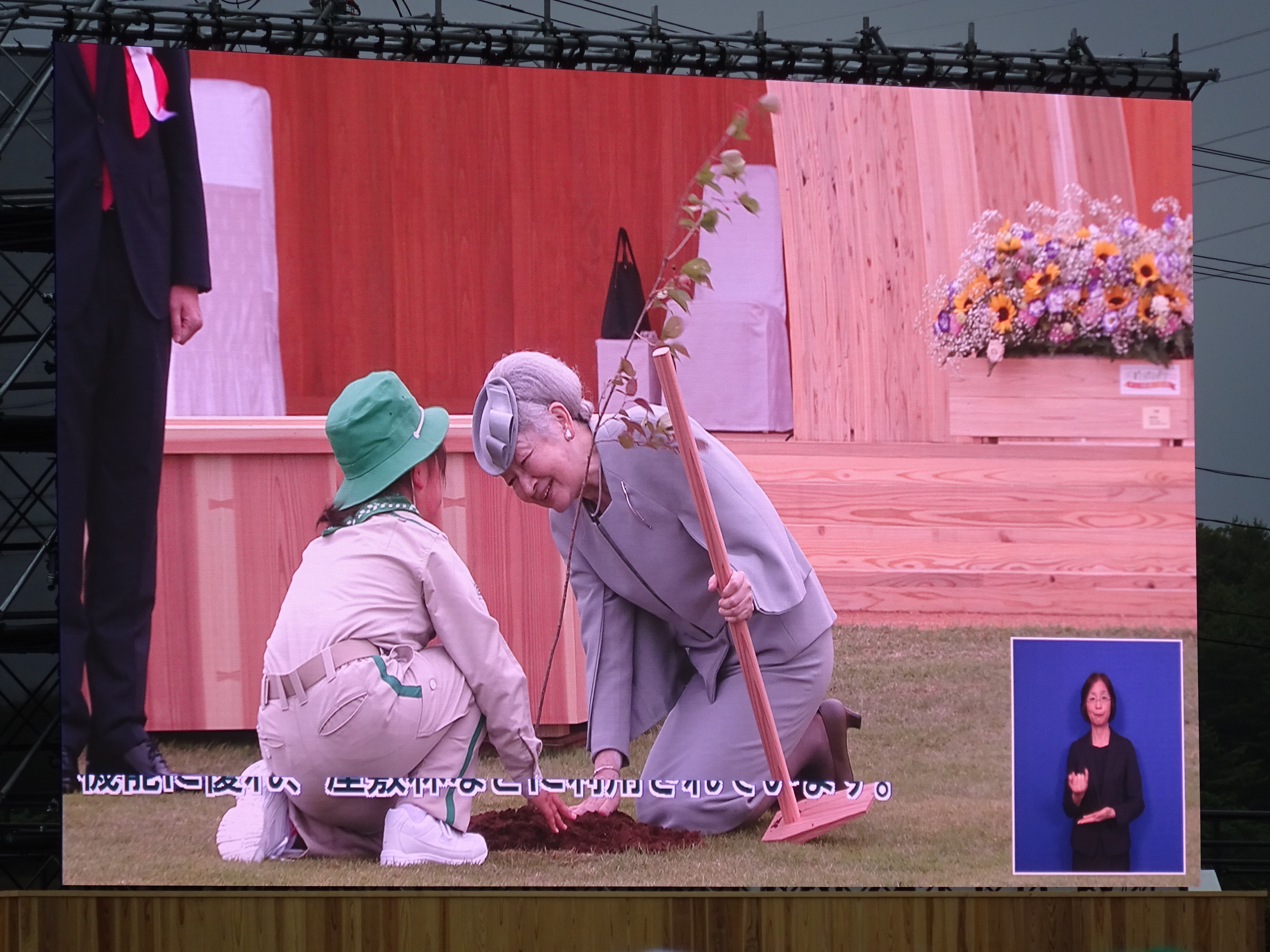 皇后陛下は、アカマツ、ヤマザクラ、ヤブツバキの3種をお手植えされました。