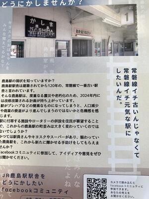 そんな中、鹿島区駅舎の老朽化という問題を知り、「自分たちの街の駅舎」について、興味関心を持ちはじめた所です。