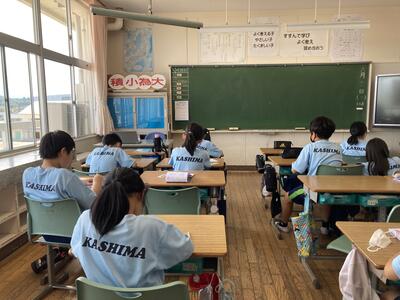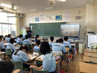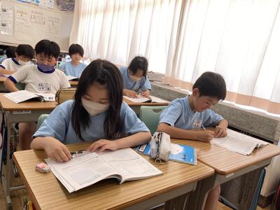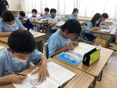 5年生2クラス64名では、3クラスに分けて1クラス約20名で勉強しています。