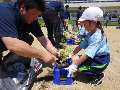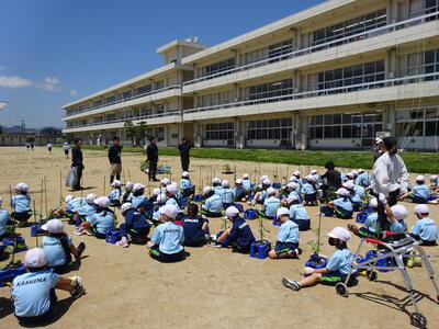 6年生は、2年生が植えやすいようにと、上手に間隔を開け穴をほってくれました。さすが6年生!下学年を思う優しさがすばらしいですね。