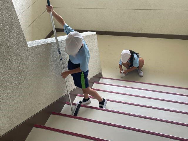 先週から1年生も加わり、縦割り清掃がパワーアップしました。