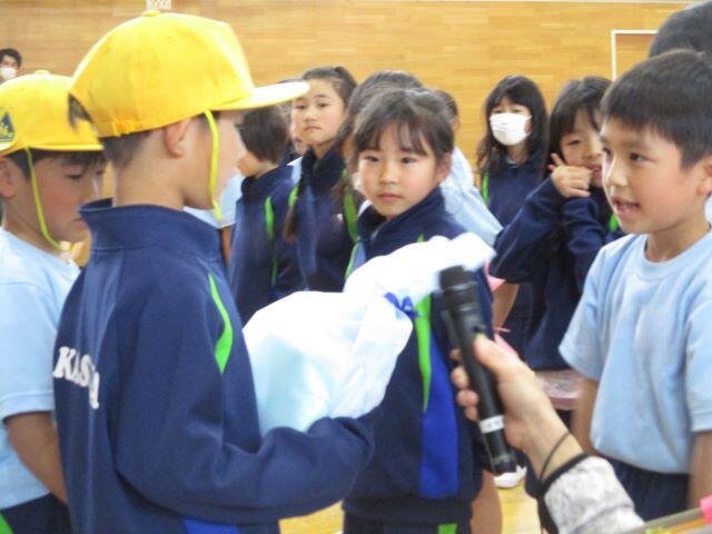 2年生からは、昨年、自分たちが育てたあさがおの種のプレゼントが贈られました。「大切に育ててください!」と命のバトンが受け継がれました。