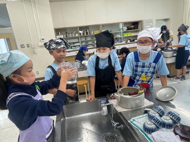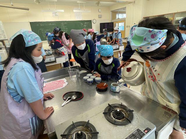 どのグループも友達と協力し合う素敵な姿が見られました。「ちょっと苦かったけど、おいしかったよ!」と笑顔で話す5年生…初めての実習は大成功でしたね。