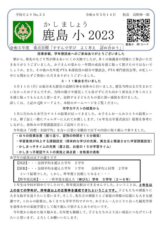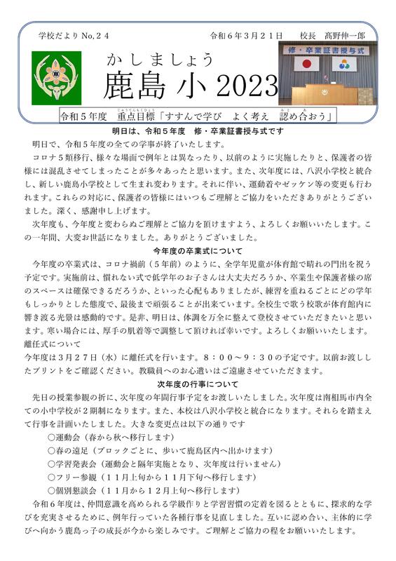 新たな鹿島小学校での学校生活がますます楽しみになりました。