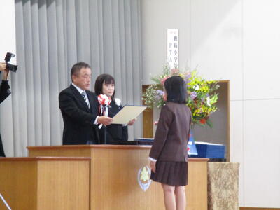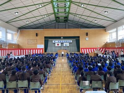 学校長からは、報徳仕法の教え「一円融合」から、大きな1つの円の中でそれぞれの学校のよさを生かし互いに認め合い・響き合い、さらに新たな伝統を築いていってほしいという、熱いメッセージが伝えられました。