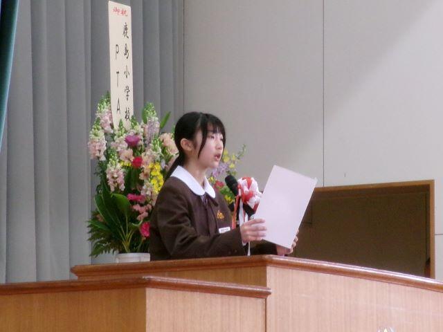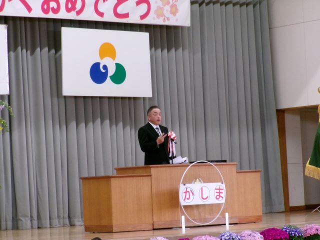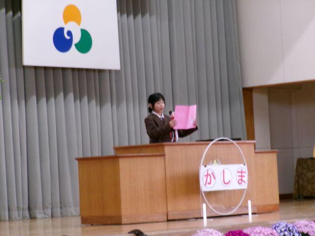 2人の児童代表あいさつでは、「3本の矢」のように「鹿島小・八沢小・真野小」のそれぞれの学校の伝統を1つにして、みんなで協力し合い素晴らしい学校をつくっていくこと、また、新たな仲間が増えることによりそれぞれの地域のよさをもっと発見していきたいという、心強いメッセージが伝えられました。