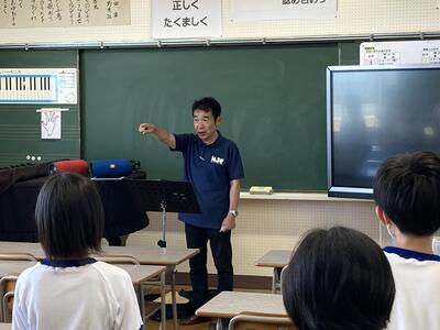 本日の5年生の音楽では、地域の方の金子様に来校頂き、子ども達への合唱指導を行って頂きました。