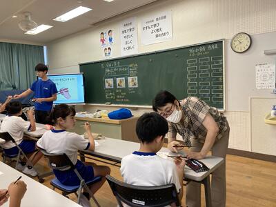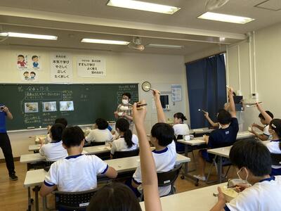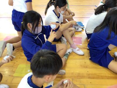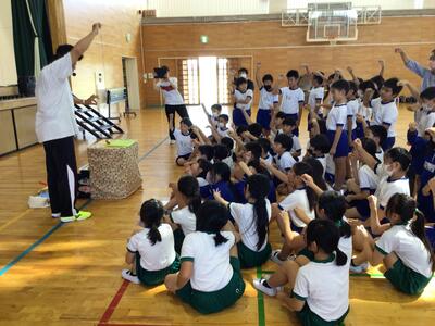 独楽回しに夢中になっているうちに、予定の時間は、あっという間に過ぎてしまいました。安藤先生の素晴らしい独楽回しの技と巧みな話術に、3年生の子どもたちみんなが魅了され、独楽回しがとっても好きになりました。安藤先生からは、「今日からここにいるみんなを弟子にする!」という嬉しい言葉をいただきました。