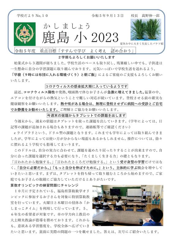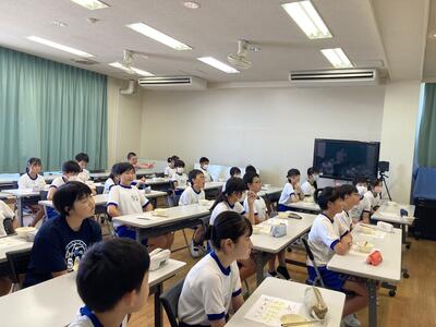 今回は、八沢小学校の6年生との合同授業も兼ねていました。回を重ねる毎に仲良くなっていくようです。次年度は鹿島中学校の同級生となります。今から楽しみです。
