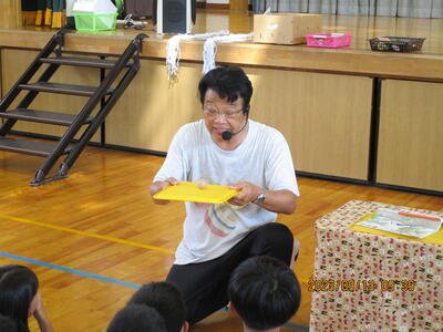 尚絅学院大学 教授で、全日本独楽回しの会 会長の安藤正樹先生による「独楽体験教室」を行いました。3年生の国語の教科書に掲載されてる安藤先生が執筆された「こまを楽しむ」は、1学期に学習しているので、子どもたちも今日の体験教室をとても楽しみにしていました。