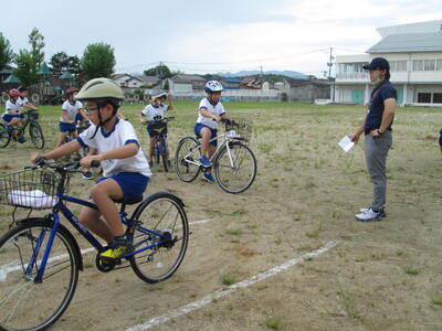 南相馬警察署から講師の警察官の方も来校し、自転車に乗るときの注意点についてご指導頂きました。