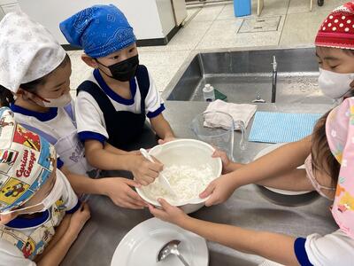 2023年9月27日 13時05分1年生の生活科でお月見だんごづくりを行いました。