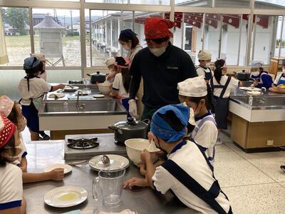 JA鹿島の髙田様が来校し、講師として子どもたちへ米粉をつかった団子作りをご指導いただきました。
