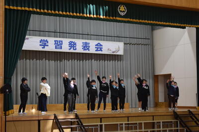 10月22日(土)に学習発表会を行いました。感染対策をしながらの練習でしたが、子どもたちは本番に向けて、真剣に取り組みました。当日、たくさんの方が会場で参観する中、子どもたちは落ち着いて、堂々と演技をすることができました。演技終了後は温かい拍手をたくさんいただきました。子どもたち一人一人が自分の役割をしっかりと果たし、素晴らしい発表を行うことができたことは、これからの成長に繋がると思います。お忙しい中お出でいただきました、皆様、ありがとうございました。