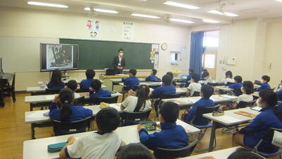 まちづくり出前講座「副読本でわかる二宮尊徳・冨田高慶の教え」で、4年生が報徳仕法について学習しました。南相馬市博物館の職員の方から、飢饉により疲弊した相馬藩の立て直しに尽力した人たちの努力や報徳仕法の教え、今も使用されてる七千石用水などについて説明していただきました。難しい語句や歴史の話もありましたが、子どもたちは一生懸命にメモを取りながら、聞いていました。学習後に子どもたちからは「報徳仕法によって、たくさんの人たちが生活に困らないようになったんだな。」、「自分たちの地域には素晴らしい人がいたんだな。」と感想を発表していました。報徳仕法と地域に対する理解が深まり、有意義な時間となりました。