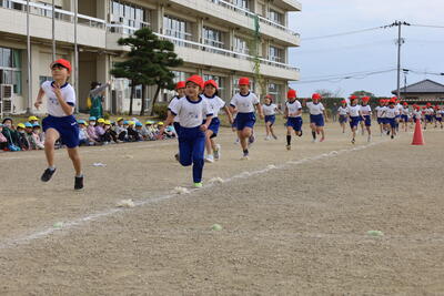 11月11日(金)に校内マラソン大会を実施しました。天候に恵まれ、たくさんの保護者の方の声援を受けながら、子どもたちは最後まで走り抜くことができました。今年は晴天が続いたおかげで、大会に向けて計画的に練習に取り組むことができました。一人一人が記録更新に向けて、業間の時間も校庭を走って練習しました。閉会式では、「マラソン大会を頑張った」、「練習よりも順位が上がって嬉しかった」という感想が聞かれました。