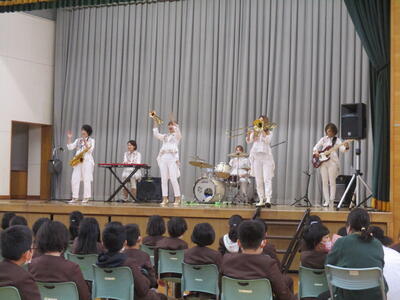 11月21日(月)、「子ども向けアート育成普及事業」として「東京ブラススタイル」様によるアウトリーチコンサートが行われました。本物の演奏を鑑賞する機会が少ない子どもたちにとっては、とても貴重な時間となりました。知っている曲がたくさん演奏されたので、とても興奮しながら観ていました。子どもたちからのアンコールの声にも快く応えていただきました。「東京ブラススタイル」の皆様、素晴らしい演奏をありがとうございました。
