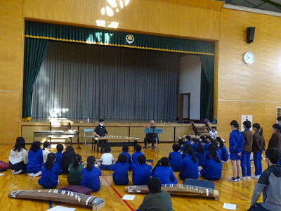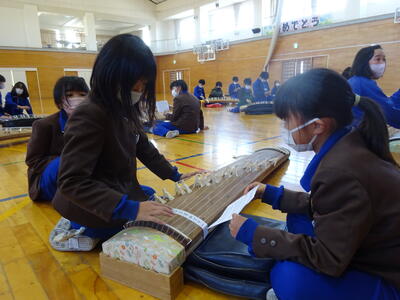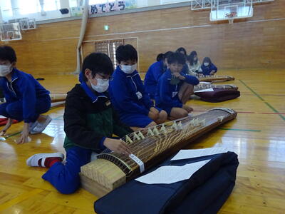 11月25日(金)、南相馬市在中の邦楽家、菅野幾代先生を講師にお招きし、5年生が琴を体験しました。始めに先生が「春の海」を演奏してくださいました。美しい琴の音色を間近で聴いた子どもたちは、とても感動していました。2時間かけて練習し、最後には「さくら さくら」を演奏できるようにまで上達しました。短い時間でしたが、貴重な経験ができました。菅野先生、ご指導ありがとうございました。
