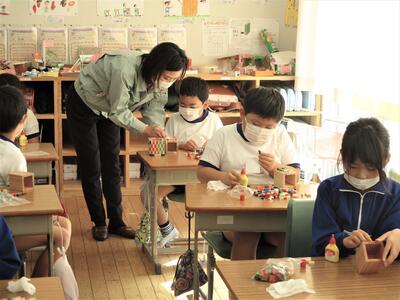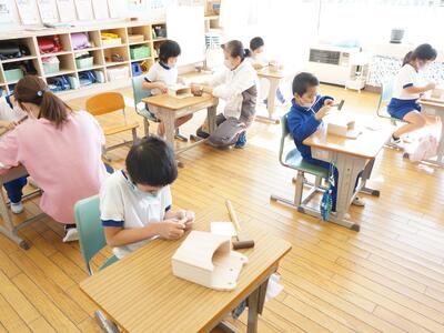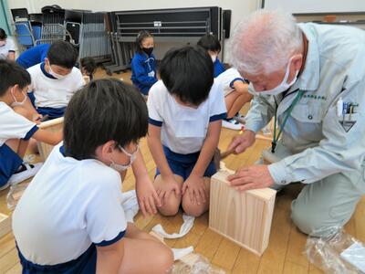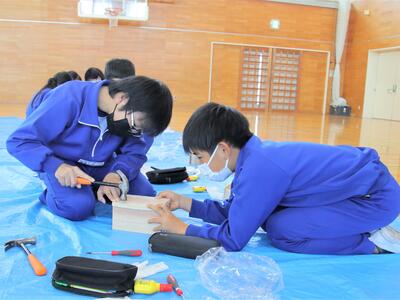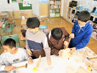 金づちを使う学年もあり、講師の先生に教えていただきながら、上手に作品をつくることができました。