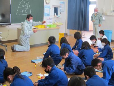 「森林環境学習」は、福島県森林環境税を活用した事業で、市の農林整備課より講師の先生をお迎えし、