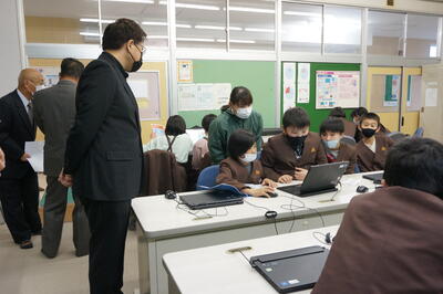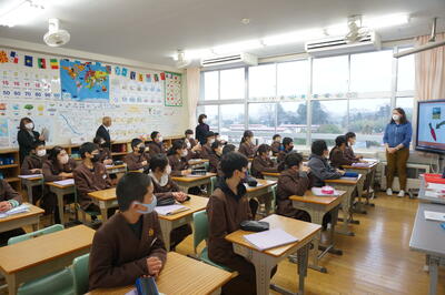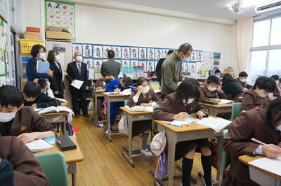 今回の評議員会では、まず各学級の授業を参観していただきました。各学級を回っていただき、